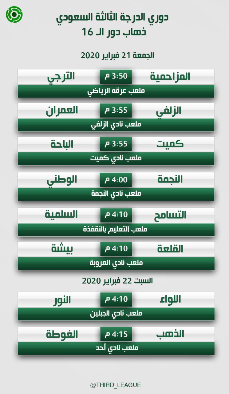 دوري الدرجة الثالثة On Twitter جدول مباريات ذهاب دور 16 Alnajmahfc Altarajiclub Bishahfc Alqala Club Alomranclub Mreeh999