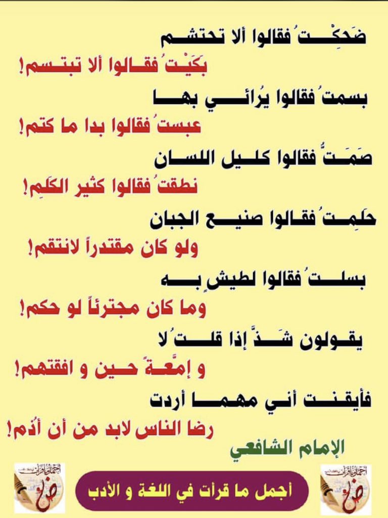 سعيد الناجي Pa Twitter من راوائع الإمام الشافعي ضحكت فقالوا ألا تحتشم بكيت فقالوا ألا تبتسـم أدب Http T Co Ceo0j4ciwi