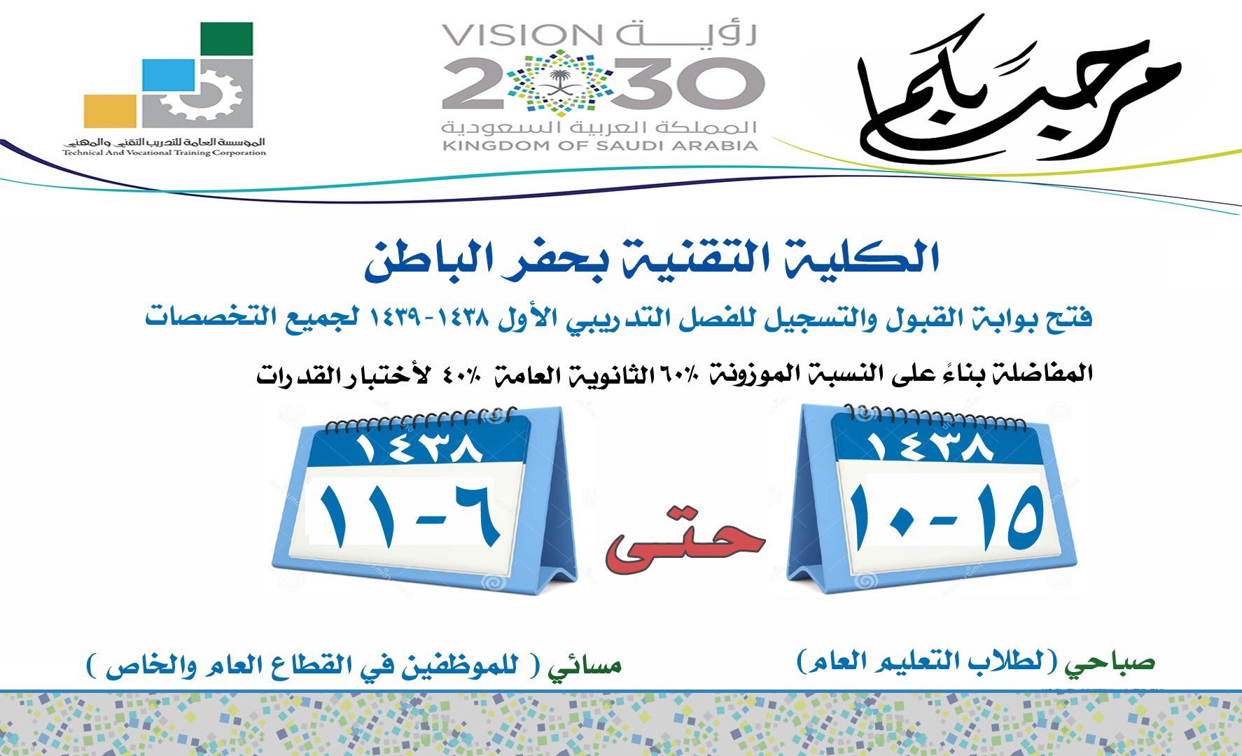 رابط بوابة القبول الموحد 1438 المؤسسة العامة للتدريب التقني والمهني كلية التقنية القبول والتسجيل نسائم نيوز